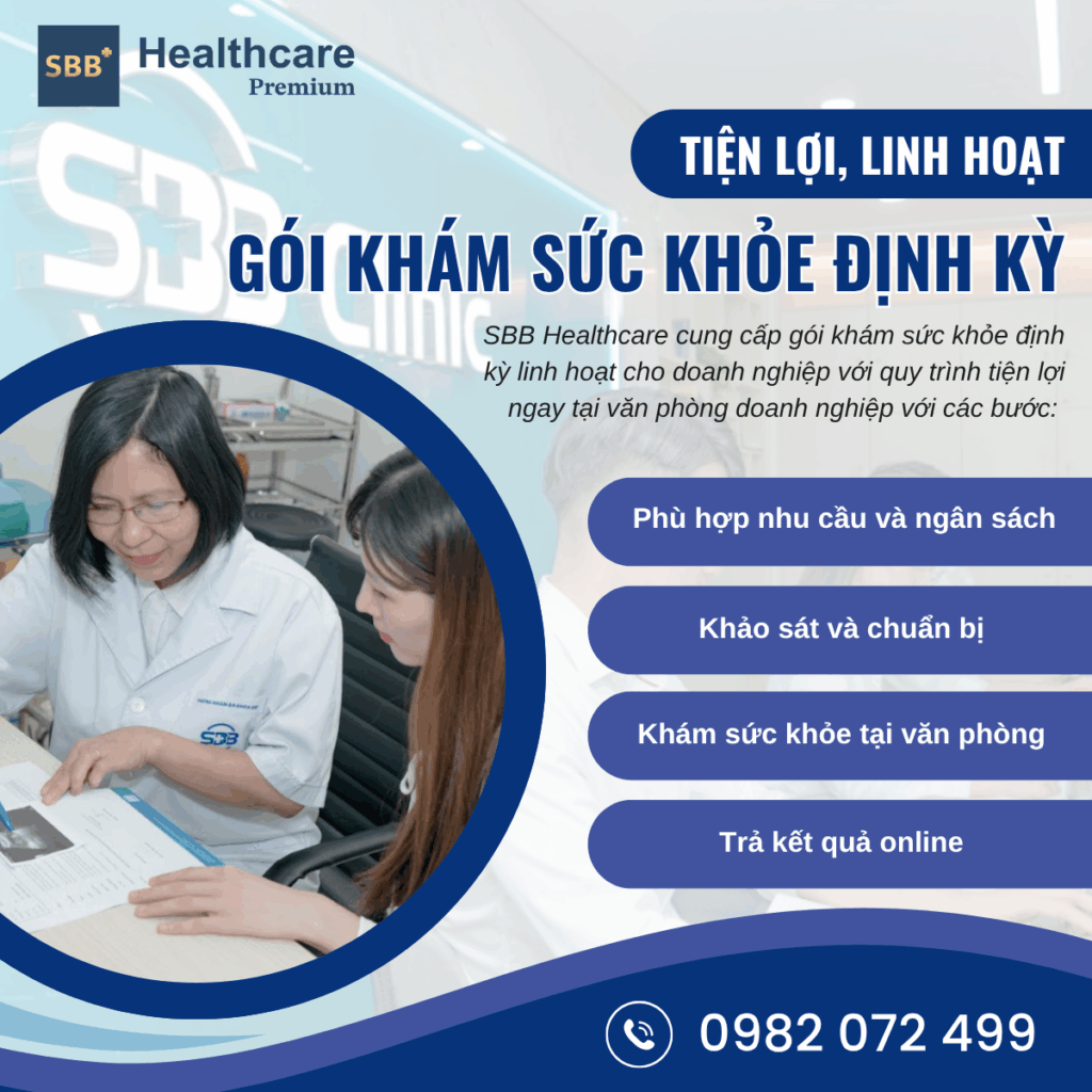 ✅ Đội ngũ bác sĩ giàu kinh nghiệm: Các chuyên khoa đến từ hệ thống phòng khám đa khoa SBB – uy tín trong lĩnh vực chăm sóc sức khỏe doanh nghiệp.